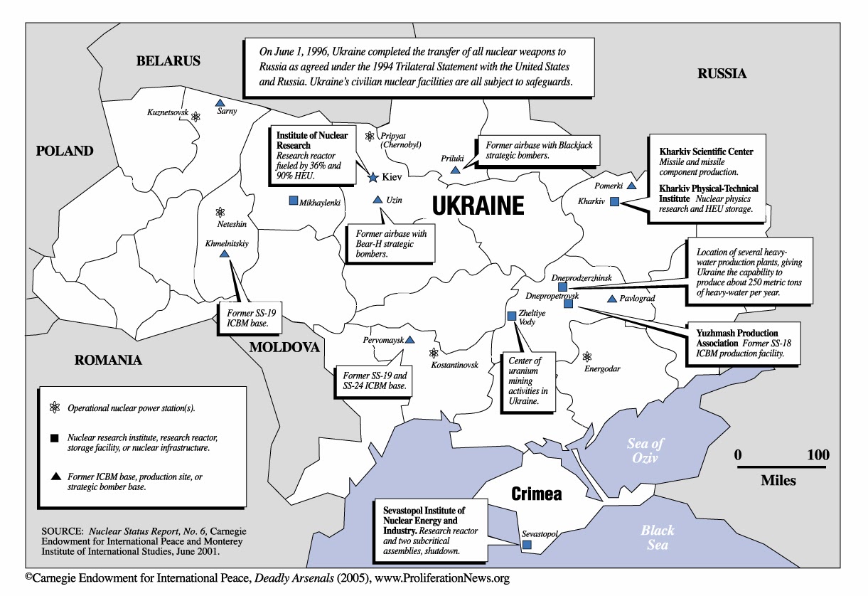 Ukraine nuclear map. (It gave up its nukes in 1996.)